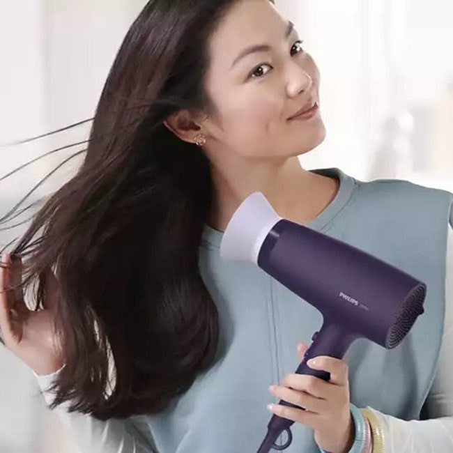 سشوار فیلیپس مدل BHD340 یکی از خوش فروش ترین سشوار های کمپانی فیلیپس است و از طراحی بسیار شیکی و به رنگ بنفش در بازار موجود می باشد. این سشوار دارای دو سری و یک فن می باشد که هوای خروجی را یکسان پخش می کند. وشما با استفاده ازاین سشوار می توانید موهای خود را خوش فرم و درخشان کنید. سشوار فیلیپس بسیار خوش دست و سبک می باشد و به هیچ عنوان دستهای شما را خسته نمی کند. این محصول بسیار کم صدا است و برای اطرافیان مزاحمت ایجاد نمی کند. جنس بدنه این سشوار از پلاستیک مرغوب و با کیفیت ساخته شده و از دوام بالایی برخوردار است. برو بدنه این دستگاه دکمه های تعبیه شده است که برای کنترل و تنطیم دمای سشوار به کار می رود و دارای حلقه آویز می باشد که می توان هر جا خواستید آن را آویزان کنید.