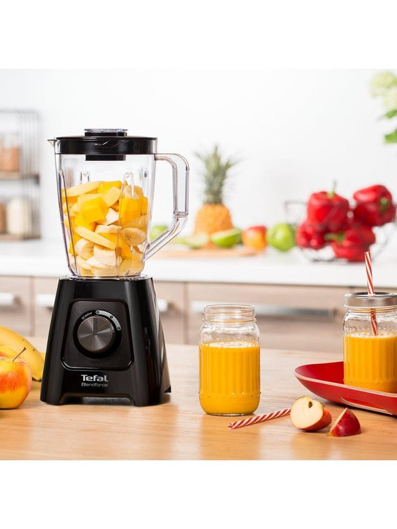 مخلوط کن تفال مدل BL420 دارای موتور قدرتمندی است که به کمک آن می توان ترکیب های ساده ای را بدون دردسر، با مقدار مناسبی برای میهمانی ها آماده نمود. Blendforce قدرت، راحتی را برای نتایج قابل اطمینان در اختیار شما قرار می دهد. این مخلوط کن 600 وات به سیستم خنک کننده هوا نوآورانه ای مجهز شده و جریان هوا را در اطراف موتور بهینه می کند تا از گرم شدن بیش از حد و استفاده مستمر دستگاه برای زمان بالاتر از 3 دقیقه، جلوگیری نماید و از طرفی، موجب افزایش عمر مخلوط کن نیز می شود. پارچ شیشه ای 1.5 لیتری، امکان تهیه مواد سرد و گرم را میسر می کند و درب پارچ به گونه ای ظراحی شده تا بتوان در حین استفاده از مخلوط کن، مواد افزودنی را با خیال راحت به آن اضافه کرد. کار با مخلوط کن آسان و راحت است و با کمک تیغه چهار پره مقاوم در برابر فولاد ضد زنگ و ولوم چرخشی قابل تنظیم در 2 سرعت به همراه پالس، می توان عملیات میکس و ترکیب را برای تهیه آبمیوه، اسموتی، سس ها و حتی یخ به سهولت انجام داد.