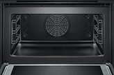 فر مایکرویو کامپکت بوش BOSCH مدل CMG633BS1 جزء سری 8 فر های توکار شرکت بوش میباشد که نسبت به فر های معمولی طراحی کوچکتری دارد و جلوه منحصر به فردی به آشپزخانه شما میبخشد. فر دستگاه دارای 6 روش گرمایشی بوده که شامل هوای داغ 4 بعدی ، هوای داغ بهینه ، گریل هوای داغ ، گریل تمام عرض ، گریل نیم عرض و پیش گرمایش میباشد . همچنین از 14 برنامه پخت خودکار تشکیل شده که موجب پخت آسان و بدون دغدغه میگردد کافیست نوع غذا را انتخاب نموده و میزان حرارت و زمان را به فر بسپارید. قابلیت مایکروویو در این فر موجب گرم نمودن سریع و یا ترکیب با هوای داغ برای پخت سریع تر مواد غذایی میگردد. توان مایکروویو 900 وات بوده و قابلیت تنظیم در 5 سطح را دارد. پنل فر مایکروویو 633BS1 به صورت لمسی بوده و به راحتی میتوانید برنامه پخت مورد نظر خود را انتخاب نمایید .