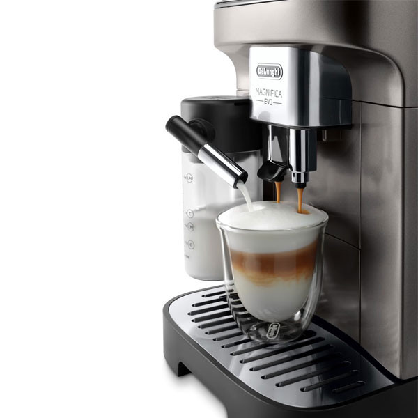 اسپرسوساز اتوماتیک دلونگی مدل Magnifica Evo ECAM 290.81 یکی از محصولات شگفت انگیز برند دلونگی بوده که به صورت کاملا اتوماتیک طراحی شده است. جنس بدنه دستگاه ترکیبی از پلاستیک مرغوب و استیل می باشد که میزان درخشندگی آن بسیار بالا است. همچنین دارای یک پنل لمسی بوده و با کمک 7 دستور برنامه ریزی شده در دستگاه قادر خواهید بود به کمک پودر قهوه و مخزن شیر انواع نوشیدنی های با شیر و بدون شیر را بدون دخالت دست و فقط با لمس یک گزینه تهیه کرده و مزه واقعی قهوه را بچشید.
