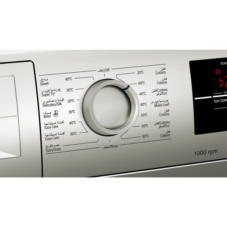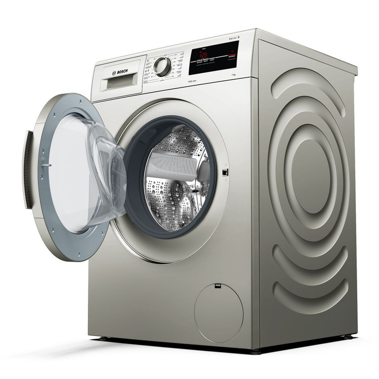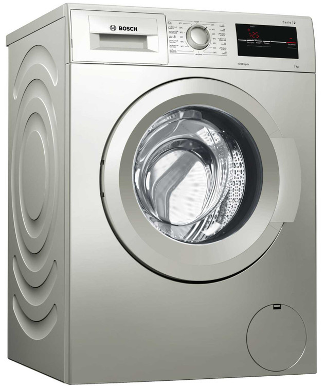 ماشین لباسشویی بوش BOSCH مدل WAJ2017 SGC با رده انرژی +++A جزء لباسشویی های کم مصرف و پر طرفدار شرکت بوش میباشد. لباسشویی 2017 دارای ظرفیت 7 کیلوگرم بوده که مناسب برای خانواده هایی با جمعیت متوسط میباشد. طراحی دیگ به صورت موجدار بوده که موجب شستشوی آرام و کارآمد البسه میشود. پنل این لباسشویی دارای نمایشگر دیجیتال ، کلید های تنظیم عملکرد و ولوم چرخشی برای تنظیم برنامه ی شستشو میباشد. برنامه های شستشو شامل شستشوی الیاف نخی با دما های 20 ، 40 ، 60 و 90 درجه ، شستشوی اقتصادی با دمای 40 و 60 درجه ، شستشوی الیاف ظریف ، پشمی ، ملحفه و شستشوی سریع 15 دقیقه ای میباشد. توسط کلید های تنظیم عملکرد نیز میتوان قابلیت VarioPerfect ، speedPerfect و عملکرد شروع با تاخیر را تنظیم نمود. از طریق قابلیت Vario Perfect در این لباسشویی میتوان متناسب با نوع لباس ، برنامه شستشو را انتخاب نمایید که موجب صرفه جویی 65 درصدی در زمان و 50 درصدی در مصرف انرژی میشود. در صورت فراموش نمودن افزودن لباسی برای شستشو یا بیرون آوردن لباس حین شستشو میتوانید از عملکرد توقف استفاده نمایید. در صورت باقیماندن کف روی البسه توسط سنسور تشخیص کف ، شستشو و آبکشی ادامه می یابد. طراحی خاص دیواره دستگاه موجب کاهش صدا و از بین رفتن لرزش حین کار میشود. توسط شروع با تاخیر نیز میتوان شستشوی البسه خود را از 1 تا 24 ساعت تنظیم نمایید. در این صورت حتی در زمان هایی که در منزل نیستید نیز میتوان دستگاه را روشن و البسه را شستشو نمود