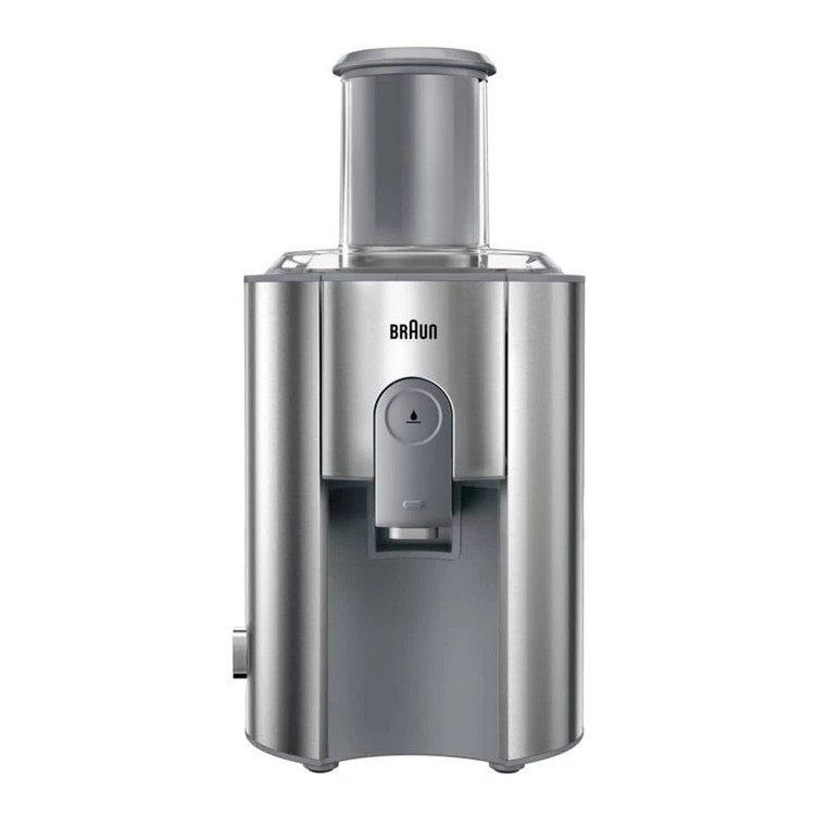 آبمیوهگیری براون مدل «J700» یکی از آبمیوهگیریهای تککاره موجود در بازار است. این دستگاه از بدنهای از جنس پلاستیک بادوام و استیل ساخته شده و استحکام خوبی دربرابر ضربه دارد. قسمت ورودی میوهها در بخش بالایی دستگاه واقع شده است که با قطر زیادی که دارد، میتواند بهآسانی قطعات بزرگ میوه را از خود عبور دهد. این ویژگی کار با دستگاه را آسانتر کرده و به آن سرعت بخشیده است. در طراحی این محصول استوانهای در نظر گرفته شده که پس از قرار دادن میوه بر دهانه ورودی دستگاه میتوان با استفاده از آن میوه را به سمت تیغهها هل داد.