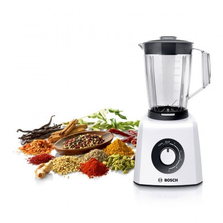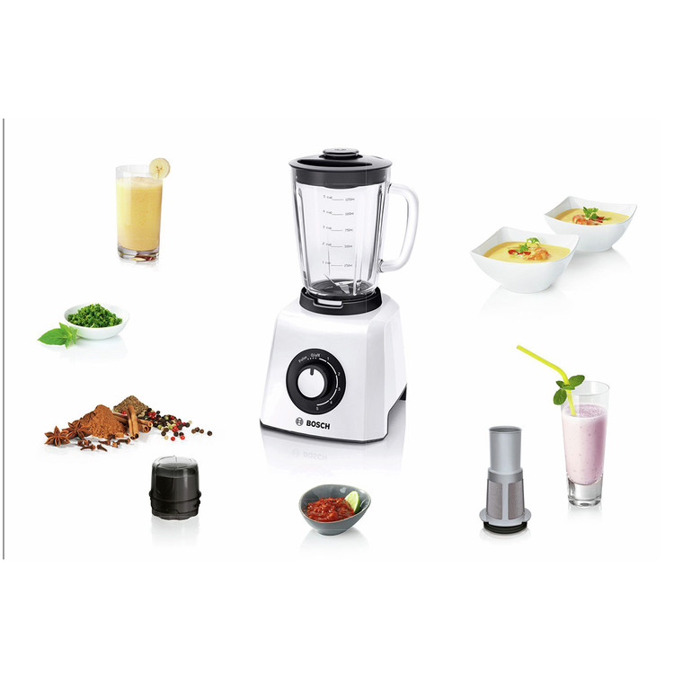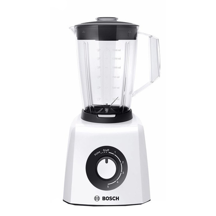 مخلوط کن بوش BOSCH مدل MMB33G5BGB با توان 600 وات دارای طراحی ساده میباشد. توسط مخلوط کن بوش میتوان انواع نوشیدنی ، سوپ ، سس و … را مخلوط نمایید. تیغه های دستگاه از جنس استیل ضد زنگ بوده و توسط آن در مدت کوتاهی میتوان انواع مخلوط ها را آماده نمود. پارچ مخلوط کن بوش از جنس شیشه مقاوم در برابر حرارت و با ظرفیت 1.9 لیتر میباشد. این دستگاه مجهز به قطعه آسیاب و اسموتی ساز میباشد که با قرار دادن میوه و مایعات درون قطعه اسموتی ساز، میتوانید اسموتی های طبیعی و تازه را میل نمایید. توسط آسیاب دستگاه نیز میتوان انواع مغز های خوراکی و … را در مدت زمان محدودی آسیاب نمود. مخلوط کن بوش بر روی پنل خود دارای یک ولوم چرخشی برای روشن و خاموش نمودن دستگاه و تنظیم سرعت در 5 درجه میباشد. تمامی قطعات دستگاه به جز بدنه اصلی قابل شستشو با ماشین ظرفشویی هستند.