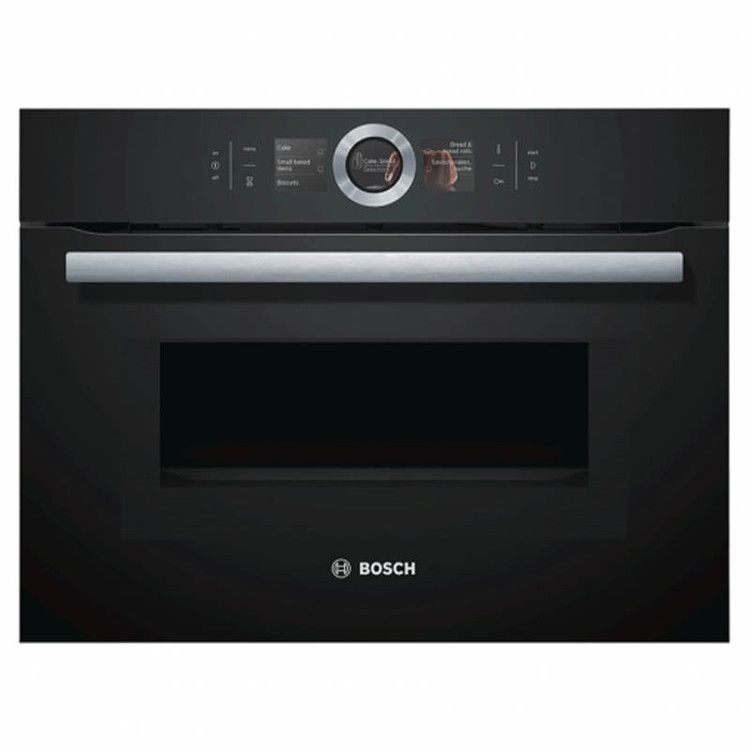 فر برقی توکار بوش مدل HBG636LB1 یکی از مدل هایی است که دارای قابلیت های چشم گیری می باشد. این فر جزو دستگاه های سری 8 و ساخت کشور آلمانه که رنگ بدنه آن که در قسمت روکار قرار می گیره مشکی است. بدنه توکار این فر از فلز بسیار مقامی ساخته شده و این بخش به صورت توکار داخل فضایی که برای نصب آن در نظر گرفته اید قرار می گیره. همان طور که گفتیم بخش ظاهری دستگاه که به رنگ مشکی می باشد از شیشه بسیار محکمی ساخته شده و بر روی درب دستگیره ای از جنس استیل نصب شده که ازاین طریق می توان درب را به راحتی باز و بسته کرد. در بخش بالای درب فر برقی توکار بوش مدل HBG636LB1 پنل نمایشی که از نوع TFT است به کار رفته و در بخش وسط این نمایشگر حلقه ای از جنس استیل برای کنترل کردن برنامه ها، زمان و دما به کار رفته و با لمس گزینه های مربوطه می توانید تنظیمات لازمه را انتخاب کنید و بهترین روش را جهت پخت برگزینید.