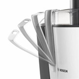 آبمیوه گیری بوش مدل MES25A0، محصولی با طراحی زیبا از این شرکت است که دارای دو مخزن آبمیوه و تفاله است که هر کدام به گونهای مجزا از دستگاه در کنار آن قرار گرفته است. بدنه پلاستیکی و سفید دستگاه در کنار سایر قطعات با رنگ تیره دستگاه را زیبا کرده است. تیغه اصلی از جنس استیل ضدزنگ است و دهانه دستگاه نیز از قطر مناسب برخوردار است. علاوه بر فیلتر دستگاه که به راحتی قابل شستشو میباشد، لوازم جانبی نیز قابلیت شستشو در ماشین ظرفشویی را دارند. برای تمیز کردن فیلتر یک برس نیز همراه دستگاه عرضه می شود. از جمله لوازم جانبی میتوان به مخزن پلاستیکی آبمیوه که شفاف و دارای درجه بندی است، و همچنین مخزن تفاله آبمیوه گیری اشاره نمود که به راحتی میتوان آنها را پس از پرشدن از دستگاه جدا نموده و با توقفی کوتاه در عملکرد دستگاه، آنها را خالی و برای ادامه آبگیری روی دستگاه نصب کرد. آبمیوه گیری بوش مدل MES25A0 دستگاهی تک کاره محسوب می شود و در 2 سرعت کار می کند. پایه های ضد لغزش زیر دستگاه مانع از لرزش و جابجایی حین فعالیت می شود. لوله خروجی دستگاه و پارچ آبمیوه طوری طراحی شده اند تا آبمیوه مستقیم وارد پارچ شده و چکه ای ایجاد نشود. ظرفیت پارچ در حدی است که 3 تا 4 لیوان کوچک یا متوسط آبمیوه را در خود جای می دهد. بوش تولید و عرضه کننده محصولات با کیفیت در بازار لوازم خانگی برقی در سراسر جهان است که مشتریان و طرفداران زیادی دارد.