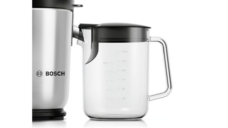 آبمیوهگیری «بوش» مدل « MES4000» دستگاهی ایدهآل برای کسانی است که بهسلامت خود اهمیت میدهند و آب میوهجات را در وعدههای غذایی خود جای دادهاند. این آبمیوهگیری با دهانهی ورود میوه با قطر زیاد، تقریبا اجازهی ورود هر میوهای را بدون برش یا با حداقل برش میدهد. آبگیری توسط تیغهای از جنس سرامیک انجام میشود و تفالهی حاصل از آبگیری در محل تفاله با ظرفیت ۳ لیتر جمعآوری میشود. تنظیم سرعت و قدرت دستگاه توسط پیچ کنترل روی دستگاه صورت میگیرد که در دو سرعت موتور را به فعالیت درمیآورد. قابلیت چرخش پالس یا لحظهای نیز در این دستگاه در نظر گرفتهشده است و تا زمانی که کاربر پیچ را روی آن نگه دارد موتور چرخش خواهد داشت. آبمیوهگیری بوش مدل MES4000 کمک میکند تا هر چه بیشتر از خواص میوهها بهرهمند شوید و نوشیدنی گوارایی نوش جانکنید. پارچ آبمیوه با گنجایش 1.5 لیتر نیز امکان سرو آبمیوه بلافاصله پس از آبگیری را میدهد. پایههای ضد لغزش زیر دستگاه نیز مانع از لرزش و جابجایی آن حین فعالیت میشوند. همچنین تمام قطعات جداشدنی آن را میتوانید در ماشین ظرفشویی شستشو دهید بدون اینکه مشکلی برای آنها پیش بیاید. محصولات شرکت بوش، طیف گستردهای از لوازمخانگی را در برمیگیرد. مراکز گسترده خدمات پس از فروش و شبکه وسیع عرضه محصولات و نیز قیمت مناسب کالاها، از امتیازات ویژه محصولات بوش به شمار میآیند.