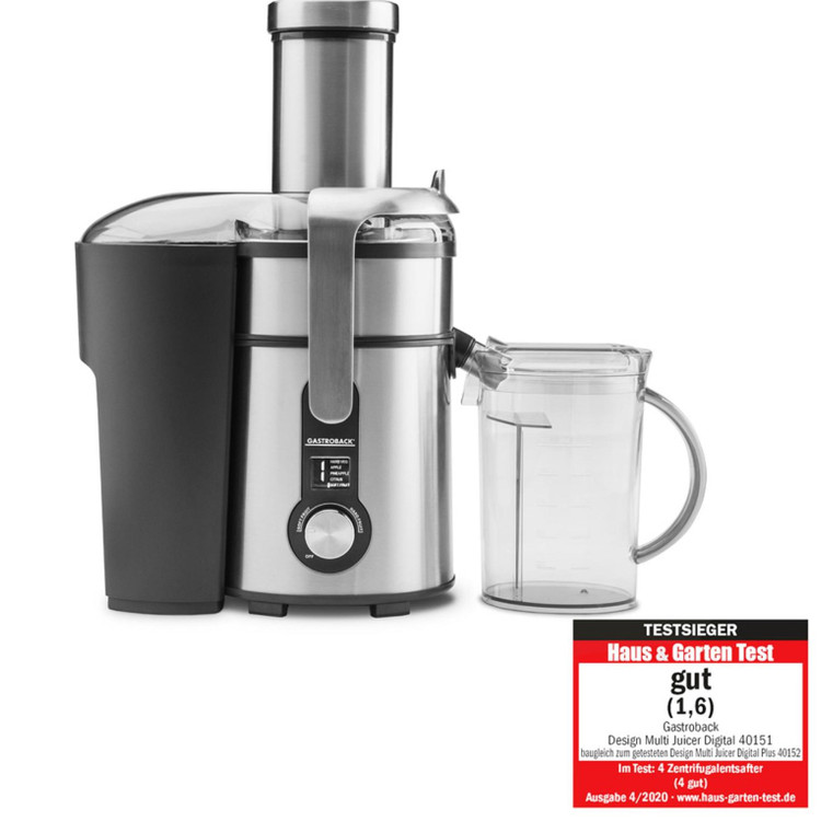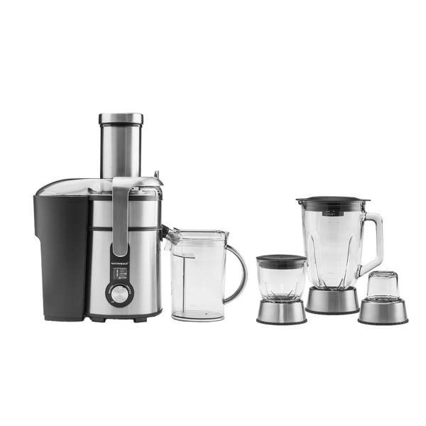 آب میوه گیری دیجیتال چند کاره قدرتمند گاستروبک قابلیت آبگیری و مخلوط کردن انواع میوه و سبزیجات بدون از دست دادن خواص اولیه-قابلیت آسیاب کردن انواع خشکبار را دارد. بدنه استيل و طراحي زيبا در عين راحتي استفاده و كيفيت بالا را براي شما به ارمغان مي اورد.ورودی میوه در آب میوه گیری دیجیتال 4 کاره گاستروبک مدل 40152 از جنس استیل با قطر 84 میلیمتر میباشد که به راحتی میتوانید میوه ها با ابعاد بزرگتر در داخل دستگاه قرار دهید. این دستگاه چند کاره علاوه بر آبگیری، قابلیت مخلوط کردن انواع میوه و سبزیجات و خرد کردن خشکبار را نیز دارد. اب ميوه گير 40152 دارای سرعت 13000 دور در دقیقه میباشد. موتور حرفه ای با طول عمر بالا با قدرت 1300 وات دستگاهی پیشرفته و حرفه ای در اختیار شما گذاشته است. بدنه فلزی و بسیار محکم دستگاه ظاهری زیبا و منحصر بفرد به آن بخشیده است و علاوه بر این تمیز کردن آن را آسان نمونده است.آب میوه گیری دیجیتال 4 کاره مدل 40152 دارای پارچ مدرج و مناسب برای نگهداری در یخچال و فریزر میباشد. مخزن تفاله گیر دستگاه نیز در پشت دستگاه تعبیه شده است. صافی استیل ضد زنگ با سوراخ های بسیار ریز فرآیند آبمیوه گیری با دقت هر چه بیشتر انجام می دهد. با این دستگاه به راحتی می توانید هویج، سیب و دیگر میوه ها را بدون برش زدن در چند ثانیه آبگیری کنید. و انواع خشکبار را به راحتی خرد کنید.