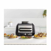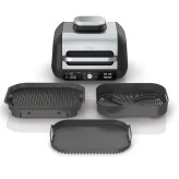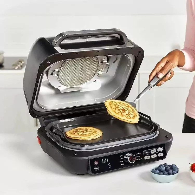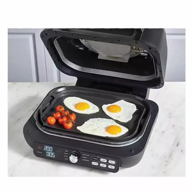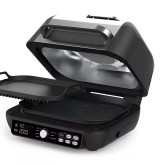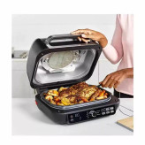 گریل و سرخ کن 651 نینجا یکی از حرفه ای ترین تولیدات برند نینجا بوده که به صورت دو کاره ساخته شده است. این دستگاه کاملاً حرفه ای بوده و مناسب انواع پخت و پز روزمره است که می تواند سرعت عمل شما را در آشپزی کردن چند برابر کرده و شما را در آماده سازی غذایی با کیفیت و سالم یاری کند. این محصول دارای قابلیت های ویژه و منحصر به فردی می باشد که می خواهیم در ادامه به بررسی آن ها بپردازیم. گریل و سرخ کن مدل AG651 نسل جدیدی از محصولات شرکت نینجا بوده که توانسته است تحولی بی نظیر در آشپزی رومزه به وجود بیاورد. این دستگاه با برخورداری از قدرت 2460 وات به راحتی می تواند انواع غذا های کبابی، ساندویچی و … را با بالا ترین کیفیت و تنوع در مدت زمان پایینی آماده کند. این محصول دارای یک سبد سرخ کن بوده که 3.8 لیتر گنجایش دارد و صفحه گریل آن نیز به راحتی می تواند 6 عدد برگر را برای شما آماده کند. سرخ کن و گریل نینجا کاملاً مناسب یک خانواده 4 الی 5 نفره بوده و می توانید با استفاده از آن بهترین غذا ها را برای خودتان و میهمانانتان آماده کنید. 7 برنامه پخت و پز این محصول دارای 7 برنامه از پیش تعیین شده و خودکار آشپزی می باشد. که شامل؛ سرخ کردن، گریل، پخت انواع پنکیک و پیتزا، کباب کردن، پختن، گرم کردن مجدد و خشک کردن انواع میوه و سبزی است. شما با کمک این برنامه های پخت می توانید انواع وعده های غذایی مختلفی را در کم ترین زمان ممکن آماده کنید. البته ناگفته نماند که به دلیل وجود سیستم گردش هوای داغ، سرخ کردن مواد غذایی در این محصول نسبت به روش های دیگر با کاهش 75 درصدی مصرف روغن انجام خواهد شد. و شما غذا هایی سالم را میل خواهید کرد. سیستم گرمایشی سیستم گرمایشی این سرخ کن از فناوری گردش هوا استفاده می کند، که این سیستم می تواند حرارت 260 درجه سانتی گراد را در فضای مخزن پخت به گردش در آورد و از این طریق مواد غذایی شما بدون نیاز به چرخش یا هم زدن یه سرعت و به طور یکنواخت پخته می شوند. همچنین این محصول دارای محفظه قابل جابجایی و قابل شستشو بوده که در زیر درب دستگاه تعبیه شده است و موجب حفظ نظافت المنت گرمایشی می شود و از پیچیدن بوی غذا در فضای خانه جلوگیری می کند. طراحی شیک و زیبای گریل و سرخ کن AG651 اصلی ترین ویژگی سرخ کن و گریل نینجا طراحی بسیار شیک آن می باشد، بدنه این محصول از جنس استیل و پلاستیک بوده که به صورت عایق سرد طراحی شده است تا در حین کار از خطرات احتمالی جلوگیری کند. این محصول دارای طراحی جذاب و جمع و جوری نیز می باشد که با رنگ مشکی و نقره ای خود می تواند جلوه ای لوکس و جذاب به آشپزخانه شما ببخشد. لوازم و قطعات جانبی این گریل به راحتی جدا می شوند و شما می توانید آن ها را در ماشین ظرفشویی قرار دهید. همچنین درب این دستگاه به صورت بازشو از بالا طرحی شده است که یک ویژگی منحصر به فرد است.