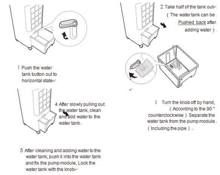 در زیر بدنه این کولر آبی چهار عدد چرخ پلاستیکی تعبیه شده که براحتی میتوانید آنرا در محل موردنظر قرار دهید.