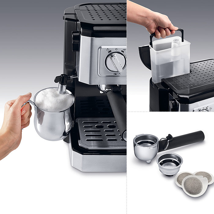 اسپرسوساز دلونگی مدل BCO 420 یک دستگاه اسپرسوساز عالی و با کیفیت با بدنهی ساخته شده از استیل است. این دستگاه امکان تهیهی قهوه فرانسه، کاپوچینو و اسپرسو را دارد. برای تهیهی قهوه فرانسه یک مخزن قهوه و آب مجزا در قسمت چپ دستگاه وجود دارد.. داخل مخزن قهوهی فرانسه یک فیلتر دائمی وجود دارد و بهراحتی میتوان آن را با استفاده از دستهاش خارج کرد. امکان تهیهی 10 فنجان قهوه فرانسه بعد از هر بار دمآوری در این دستگاه فراهم شده است. در قسمت اسپرسو این دستگاه امکان ریختن پودر یا گذاشتن پد مخصوص وجود دارد. همچنین این محصول دارای صفحهی گرمنگهدار برای 10 عدد فنجان است. در قسمت زیر نازل اسپرسو، سینی چکهگیر وجود دارد و امکان تهیهی کفشیر و آبجوش هم توسط این مدل فراهم است. به صورت مجموع این مدل 1750 وات توان مصرفی دارد و میتواند گزینهای مناسب برای دوستداران انواع قهوه باشد.