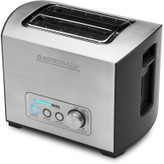 ین دستگاه با بدنه ای از جنس استیل ضد زنگ و پلاستیک مشکی تولید شده است. توان مصرفی این دستگاه 950 وات است و در مدت زمان کوتاهی می تواند دو عدد نان تست و یا دو برش از نان های مختلف را گرم و برشته نماید. برای توستر Gastroback مدل 42397 دو درگاه قرارگیری نان طراحی شده است. برای استفاده از این دستگاه می توانید نان ها را داخل درگاه قرار داده و به کمک اهرمی که در سمت راست قرار دارد آن ها را به سمتپایین هدایت کنید تا توسط المنت های حرارتی دستگاه گرم شوند. در قسمت جلوی توستر مدل 42397 گاستروبک کلیدی برای روشن و خاموش کردن دستگاه و همچنین تنظیم حرارت در نظر گرفته شده است. در این قسمت کلیدهایی نیز برای یخ زدایی و همچنین گرم کردن دوباره و توقف عملیات طراحی شده است. هنگامی که درجه حرارت دستگاه را تنظیم می کنید، چراغ های نشانگر LED در این قسمت میزان آن را به شما نشان خواهد داد. در قسمت بالای توستر گاستروبک Gastroback مدل 42397 پایه ای از جنس استیل تعبیه شده که با استفاده از آن ها می توانید نان های حجیم مانند کلوچه و یا شیرینی را گرم نمایید. زیر توستر نیز یک سینی فلزی برای جمع آوری خرده های نان قرار دارد که می توان آن را به صورت کشویی بیرون آورده و پس از تخلیه در جای خود قرار داد.