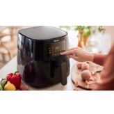 همان طور که از نام این محصول مشخص می باشد، این محصول از برند فیلیپس و کشور چین می باشد. هم چنین توان مصرفی این سرخ کن 2000 وات است و در ساختار این دستگاه سرخ کن، از یک المنت با توان مصرفی 2000 وات استفاده شده است. از دیگر ویژگی های این محصول می توان به چند کاره بودن آن اشاره نمود. شما می توانید با استفاده از سرخ کن فیلیپس مدل HD9270 انواع سیب زمینی، اسنک، مرغ، جوجه، همبرگر، سوسیس، گوشت، ماهی، کیک، مافین، نان تست، سبزیجات و … را طبخ نمایید. جزو دسته کم روغن و بدون روغن بوده و بر اساس ظرفیت برای 4 نفر مناسب می باشد. از نظر ظرفیت کاسه اگر مقیاس خود را سیب زمینی تازه قرار دهیم، شما می توانید به مقدار 0. 8 کیلوگرم ( 800 گرم ) داخل آن سرخ نمایید. برای مقدار سیب زمینی گفته شده ( 800 گرم )، تنها 7 میلی لیتر روغن نیاز دارید. بلکه سرخ کن با استفاده از دمنده های تعبیه شده در ساختار خود این امکان را به مواد غذایی می دهد تا با حرارت بالا و با کم ترین میزان روغن سرخ و پخته شوند. تکنولوژی به کار رفته در این محصول فیلیپس، Rapid Air می باشد. مزیت این تکنولوژی بدین صورت است که گردش هوا را در داخل سرخ کن سرعت بخشیده و پخش بو را در زمان سرخ کردن ماده غذایی به حداقل می رساند. این دستگاه سرخ کن، این امکان را به شما می دهد تا غذای سرخ شده خود را گرم نگه دارید. در واقع قابلیت گرم نگهدارندگی را دارا می باشد. از دیگر ویژگی های این دستگاه چند کاره میتوان به موارد زیر اشاره کرد: هم چنین شما می توانید در زمان طبخ شدن و سرخ نمودن غذا، دمای آن را به دلخواه تنظیم نمایید. لازم است بدانید که پس از آماده سازی غذا توسط دستگاه سرخ کن، دستگاه به طور کاملا خودکار خاموش خواهد شد. شما نیز می توانید با استفاده از تایمر، زمان طبخ و پخت را مشخص نمایید و از طریق چراغ نشان گر زمان پخت، آن را بررسی نمایید. کاسه این دستگاه سرخ کن، به شکل مربع بوده و نوع آن کشویی می باشد و جنس آن از روکش نچسب است.