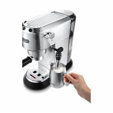 بر روی بدنهی اسپرسو ساز دلونگی و در قسمت بالای آن سه دکمه با طراحی زیبا قرار گرفته است که در هنگام استفاده چراغ زیر آنها روشن میشود. دو دکمه برای تعیین مقدار قهوهی خروجی دستگاه که شامل 1 یا 2 فنجان است،میباشد و دکمهی دیگر نیز برای تهیهی کف شیر به کار میرود.مخزنها با نشانگر میزان سطح آب، به گونه ای طراحی شده اند، تا بتوان به راحتی آنها را از دستگاه جدا و محتویات آنها را تخلیه کرد.