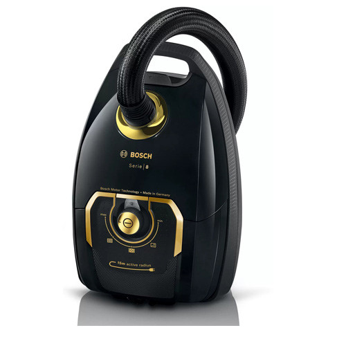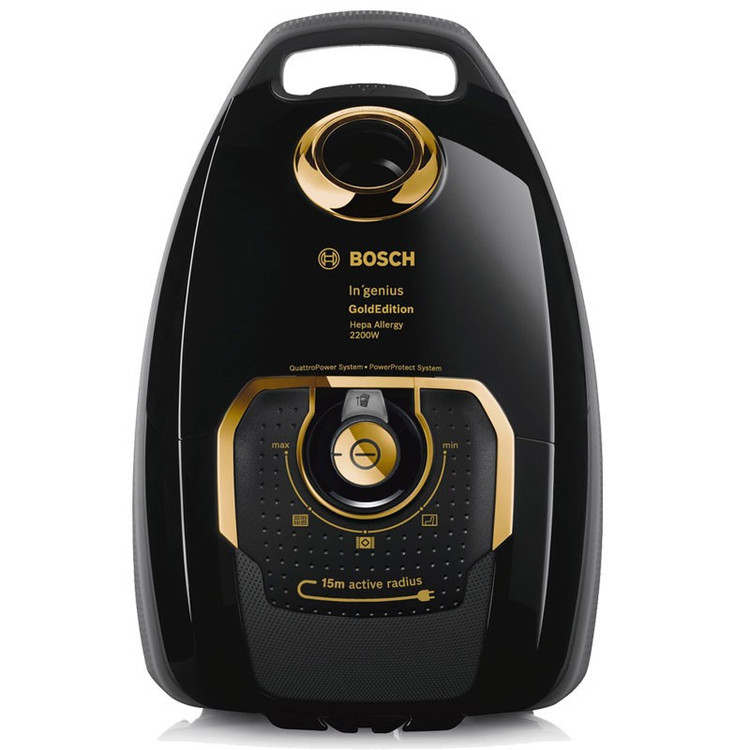 موتور جاروبرقی BGL8GOLDIR بوش بسیار قدرتمند و کم صدا میباشد و توان مصرفی آن 2200 وات است. تکنولوژیIn ‘genius Gold Edition که در این جاروبرقی تعبیه شده، یک تمیزی فوقالعاده را برای شما به ارمغان میآورد. سیستم Power Protect طراحی شده توسط شرکت سازنده با60 درصد قدرت مکش بیشتر باعث میشود تا با جریان هوای عالی، برای عملکرد تمیز کردن، شما جاروکشی پرقدرتی را داشته باشید، همچنین وجود این سیستم باعث افزایش مکش جاروبرقی در زمان نیمه پر بودن کیسه می گردد. سیستم Quattro Power عملکرد بسیار عالی در مکش دارد که باعث نتایج عالی در جارو کردن با مصرف انرژی کمتری میشود. این جاروبرقی دارای موتور کمپرسور HiSpin با تیغه های ایرودینامیک و کاملا کالیبره یکی از کم مصرف ترین جاروهای موجود در بازار است. فیلتر این جاروبرقی هپا (HEPA) میباشد که با ویژگی بالا برای عملکرد بهتر، تمام گرد و غبار را به خوبی به خود جذب می کند و مانع از پخش شدن در محیط میشوند و هوای خروجی 99 درصد بدون ذرات آلرژیزا هستند. همچنین این فیلتر قابل شستشو میباشد. پارویی این مدل جاروبرقی بوش مجهز به Air Bumper است که از ایجاد خطوط سیاه روشن روی مبلمان و از ایجاد خط و خش روی سطوح جلوگیری میکند. حجم کیسه گرد و غبار این مدل جاروبرقی 5 لیتر میباشد که این حجم باعث میشود شما ماه ها از یک کیسه استفاده کنید و در هزینه خرید مداوم کیسه صرفهجویی کنید. پاکت مصرفی این مدل جاروبرقی بوش تیپ G میباشد. وجود 5 عدد کیسه اضافی داخل جعبه دستگاه و برخورداری از شلنگ کنفی از دیگر مزایای این جاروبرقی بشمار میآید. لوازم جانبی همراه جاروبرقی شامل 3 ابزار حرفهای میباشد که شامل برس اثاثیه، برس بسیار بلند درزها و برس سری حرفهای که مجهز به سیستم Silence Sound است که باعث عملکرد بیصدا و آرام میباشد. لوله خرطومی این جاروبرقی بسیار باکیفیت است و به راحتی پاره نمی شود و تغییر شکل نمیدهد. این جاروبرقی بوش با دارا بودن لوله پلاستیکی تلسکوپی خود مناسب هر کاربری میباشد زیرا میتواند به راحتی لوله جاروبرقی را بلند و کوتاه کند. دسته این مدل جاروبرقی ارگونومیک میباشد که باعث سهولت در استفاده از آن میشود.