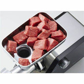 چرخگوشت «پاناسونیک» مدل «MK-ZJ2700» محصولی باکیفیت و قدرتمند از این شرکت است که امکان تهیهی گوشت چرخشده را در زمانی کوتاه و با کمترین زحمت به کاربر میدهد. این دستگاه با موتور پرقدرت 2700 وات خود بهراحتی قطعات گوشت را چرخ کرده و با برخورداری از دیسکهای مختلف چرخکردن، این امکان را به شما میدهد که در غذاهای خود تنوع ایجاد کنید. دیسکهای چرخگوشت مدل MK-ZJ2700 گوشت را در سه اندازهی ریز، متوسط و درشت چرخ میکنند. این سه دیسک از جنس استیل ضدزنگ هستند و برای کار با آنها باید در گلویی مخصوص خود قرار گیرند؛ همچنین دو سری مخصوص سوسیسساز و کبهساز برای این دستگاه در نظر گرفته شده است که به کمک آنها میتوانید غذاهای گوشتی سالم و خوشمزهی متنوعی را در خانه تهیه کنید. گلویی و سینی این محصول هم فلزی است. برای نظافت آسان دیسکهای این چرخگوشت قطعهی کاربردی مخصوصی از جنس پلاستیک در نظر گرفته شده است. از دیگر ویژگیهای این محصول میتوان به سیستم چرخش معکوس اشاره کرد که قادر است کارایی این محصول را تا حد زیادی افزایش دهد. درصورتیکه رگ و پی یا قطعات بزرگ گوشت دور مارپیچ یا تیغه دستگاه گیر کنند، میتوان بهکمک عملکرد چرخش معکوس بهراحتی آنها را خارج کرد. بهاینترتیب همهی قطعات برعکس چرخیده و انسداد رفع میشود.